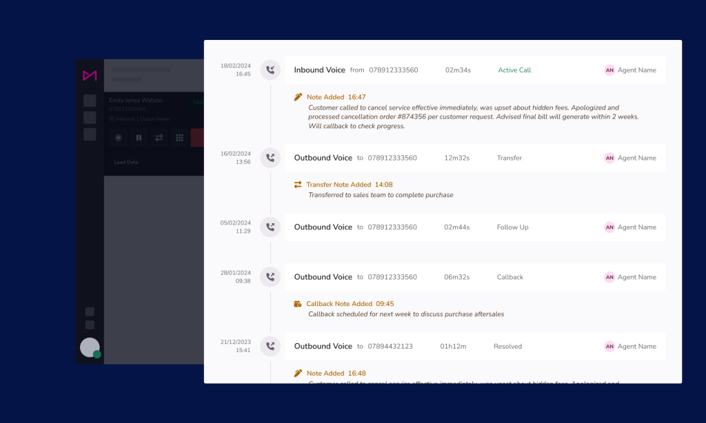 Effective communication and collaboration are key to delivering consistent, personalised customer experiences across multiple touchpoints. Our revamped Contact Hub introduces a centralised location for agents to capture and access notes from various interactions, including calls, transfers, and callbacks.