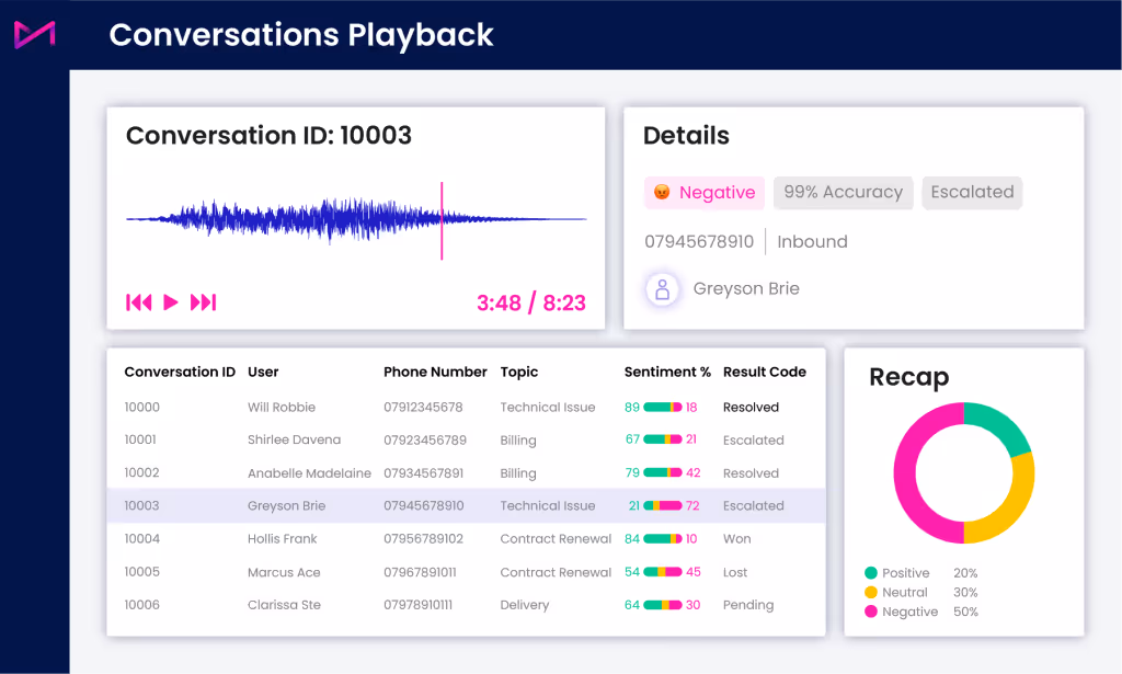 Book a customised demo to learn how our AI-led speech analytics can understand customer sentiment, improve call quality, and reduce churn in your contact centre.