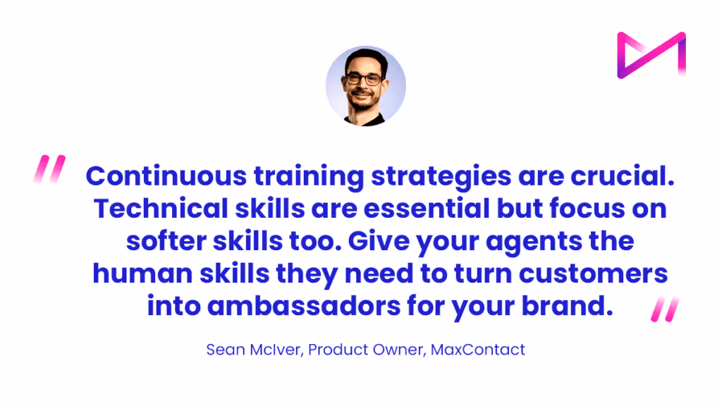So continuous training strategies are crucial. Technical skills are essential but focus on softer skills too. How do you talk to an angry customer? How do you empathise with someone in distress? Give your agents the human skills they need to turn customers into ambassadors for your brand.