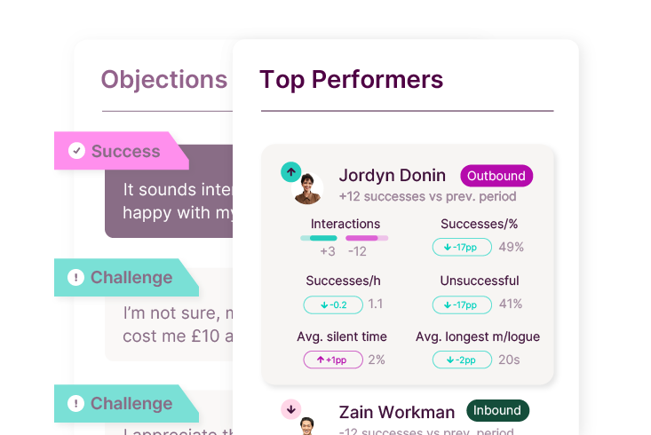 Surface coaching opportunities instantly. Identify top performer behaviours, spot compliance risks, and track improvement trends with actionable insights that drive real results.
