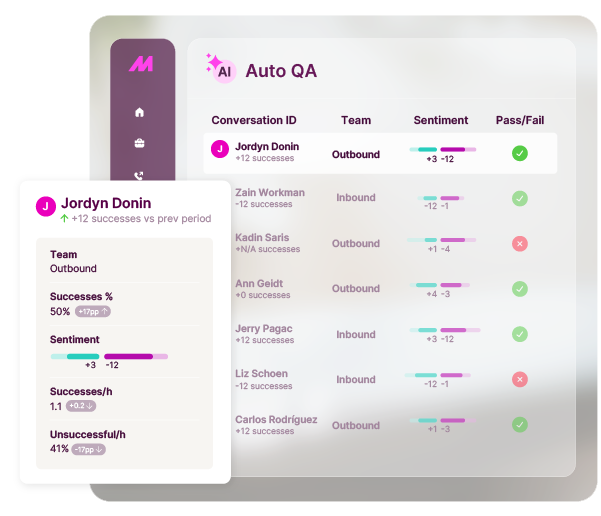 Gone are the days of 5% random sampling. Auto QA analyses every call, chat, and email interaction, giving you complete visibility into your team's performance and customer experience.