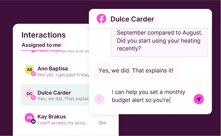 MaxContact's Facebook Messenger integration connects with your CRM and customer databases. Link conversations to customer records automatically and access data to personalise responses.