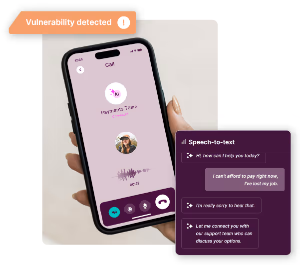 AI handles routine payment processing and account verification, freeing your team to focus on complex cases that require human expertise and empathy.